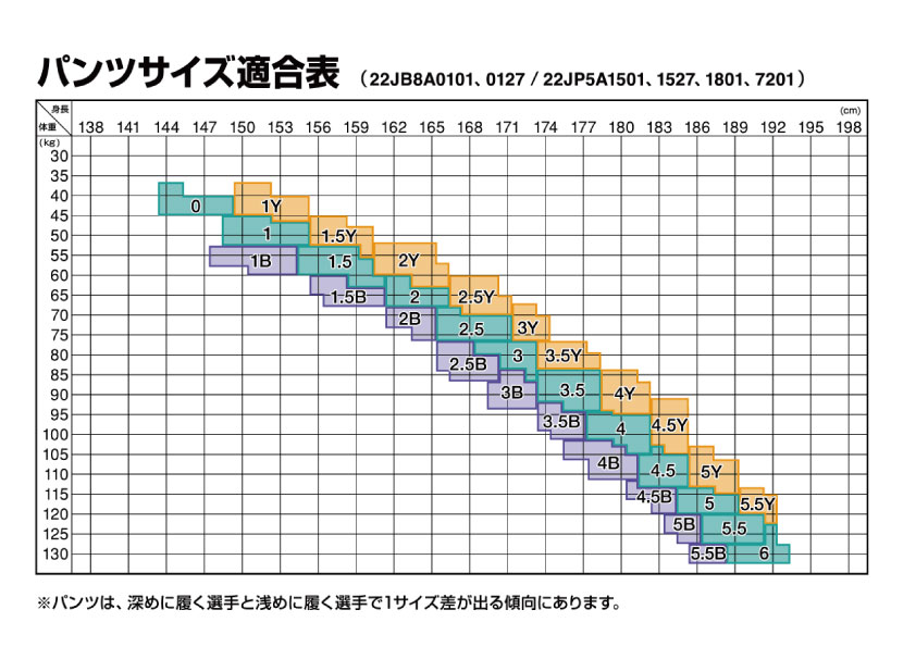 ➀基本となるサイズを見つける 例:170cm/70㎏ 2.5号~3号目安